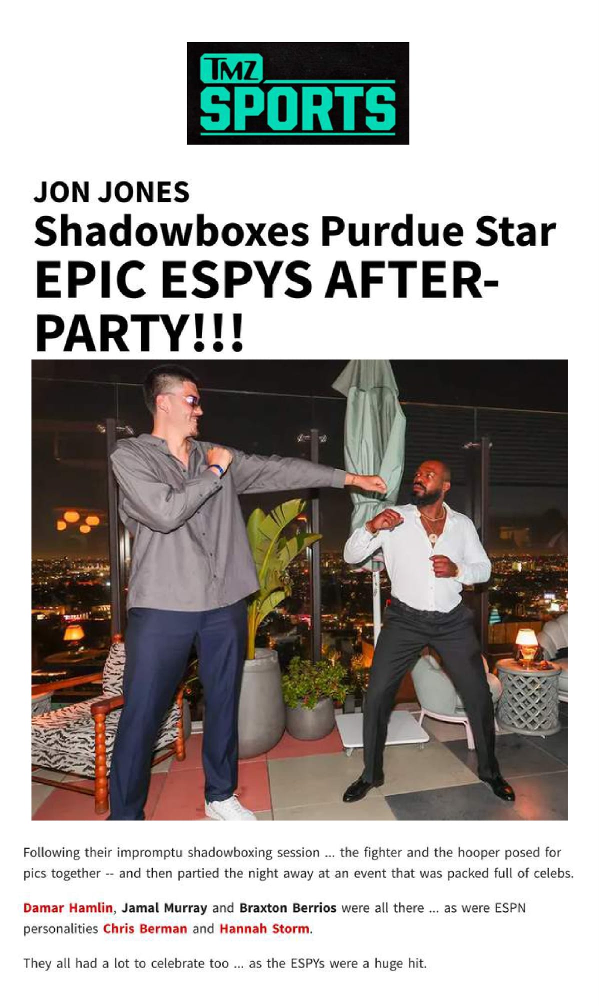 Capitalizing on the celebrity grandeur of the ESPY Awards, TR Sports teamed up with long-time ESPY producer, Full Day Productions, to bring The Afterparty to life. Taking place at the official ESPY talent hotel, the Pendry West Hollywood, The Afterparty brought together industry tastemakers, c- suite executives, influential decision makers, and award winning athletes for a night of celebration and networking.
