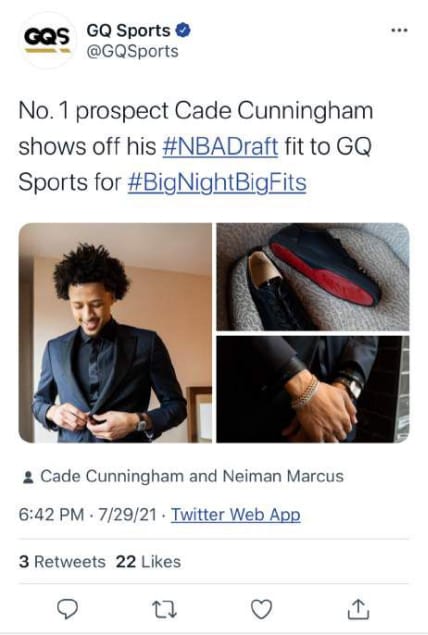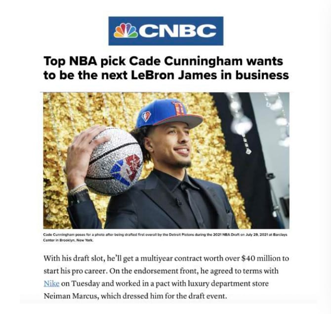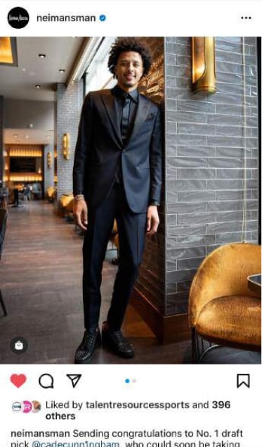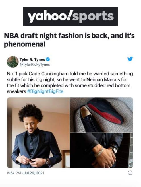By partnering Neiman Marcus with four high profile picks, including first overall pick Cade Cunningham, Talent Resources Sports was able to develop an extensive social media program centered around one of the most important days on the international sports calendar to further connect the worlds of sports and fashion.